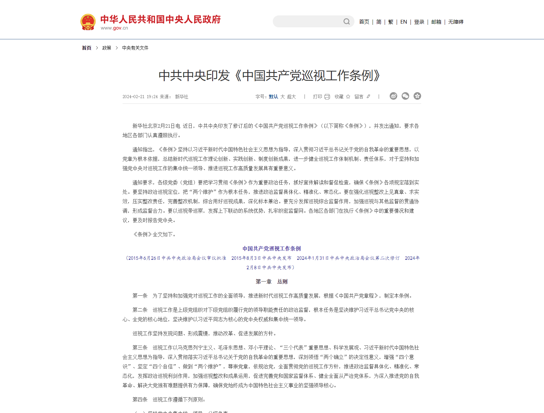 中國共產(chǎn)黨黨內(nèi)法規(guī)執(zhí)行責(zé)任制規(guī)定(試行)(2019年8月30日中共中央政治局會(huì)議審議批準(zhǔn)2019年9月3日中共中央發(fā)布) 第一條為了提高黨內(nèi)法規(guī)執(zhí)行力,推動(dòng)黨內(nèi)法規(guī)全面深入實(shí)施,根據(jù)《中國共產(chǎn)黨黨內(nèi)法規(guī)制定條例》,制定本規(guī)定。第二條各級(jí)黨組織和全體黨員負(fù)有遵守黨內(nèi)法規(guī)、維護(hù)黨內(nèi)法規(guī)權(quán)威的義務(wù)。各級(jí)黨組織和黨員領(lǐng)導(dǎo)干部必須增強(qiáng)“四個(gè)意識(shí)”、堅(jiān)定“四個(gè)自信...