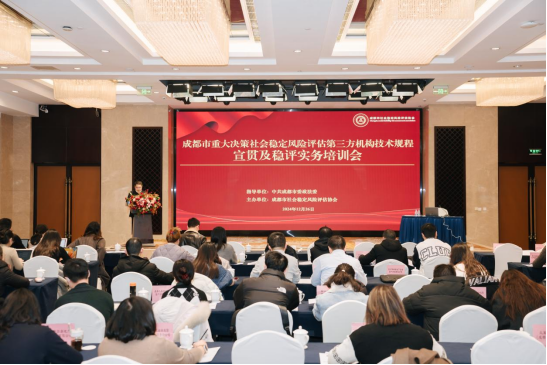 為做好新形勢下重大決策社會穩(wěn)定風(fēng)險評估工作,進一步提升全市第三方機構(gòu)社會穩(wěn)定風(fēng)險評估工作質(zhì)效,成都市社會穩(wěn)定風(fēng)險評估協(xié)會于2024年12月26日組織開展《成都市重大決策社會穩(wěn)定風(fēng)險評估第三方機構(gòu)技術(shù)規(guī)程(2024年版)》(下稱“《技術(shù)規(guī)程》”)宣貫及穩(wěn)評實務(wù)培訓(xùn)會。市委政法委有關(guān)負(fù)責(zé)同志、協(xié)會領(lǐng)導(dǎo)及會員單位穩(wěn)評從業(yè)人員共計180余人參訓(xùn)。