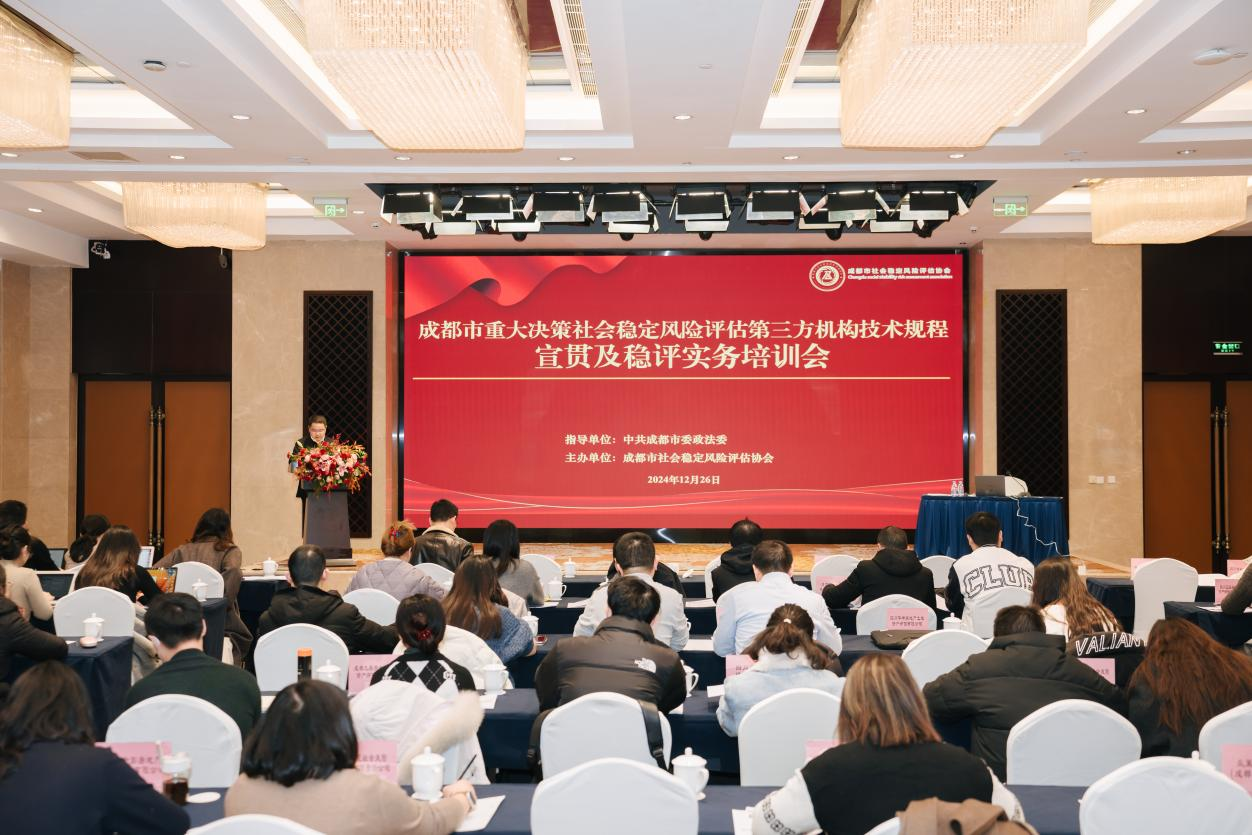 2024年12月26日,《成都市重大決策社會穩(wěn)定風險評估第三方機構(gòu)技術(shù)規(guī)程(2024年版)》宣貫及穩(wěn)評實務培訓會在成都順利舉行。