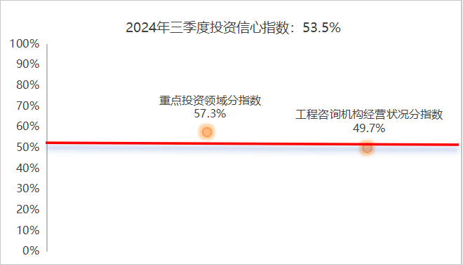 2024年三季度投資信心指數(shù)為53.5%,較二季度上升1%,投資信心向好。投資信心指數(shù)由重點投資領域分指數(shù)和工程咨詢機構經營狀況分指數(shù)構成,其中重點投資領域分指數(shù)對投資信心指數(shù)支撐作用明顯。