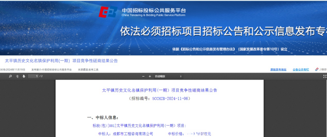 成都市工程咨詢有限公司中標太平鎮(zhèn)歷史文化名鎮(zhèn)保護利用(一期)項目可行性研究報告編制服務