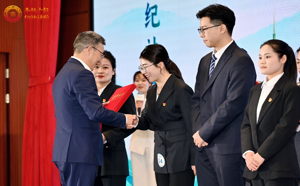 2024年12月31日,在“弘紀(jì)法清風(fēng)·揚時代正氣”成都市市屬國企首屆年輕干部紀(jì)法講師評選決賽活動中,代表成都設(shè)計咨詢集團參賽的我司青年干部林亞麗同志以“紀(jì)法科目一”為題,以自導(dǎo)自演的情景短劇為課程線索,緊密圍繞國企職工在行權(quán)履職過程中遇到的紀(jì)法難題,講了一堂生動的紀(jì)法課程。經(jīng)過激烈角逐,林亞麗同志榮獲“十佳”紀(jì)法講師稱號,并被光榮聘任為青年紀(jì)法講師巡回宣講團成員。