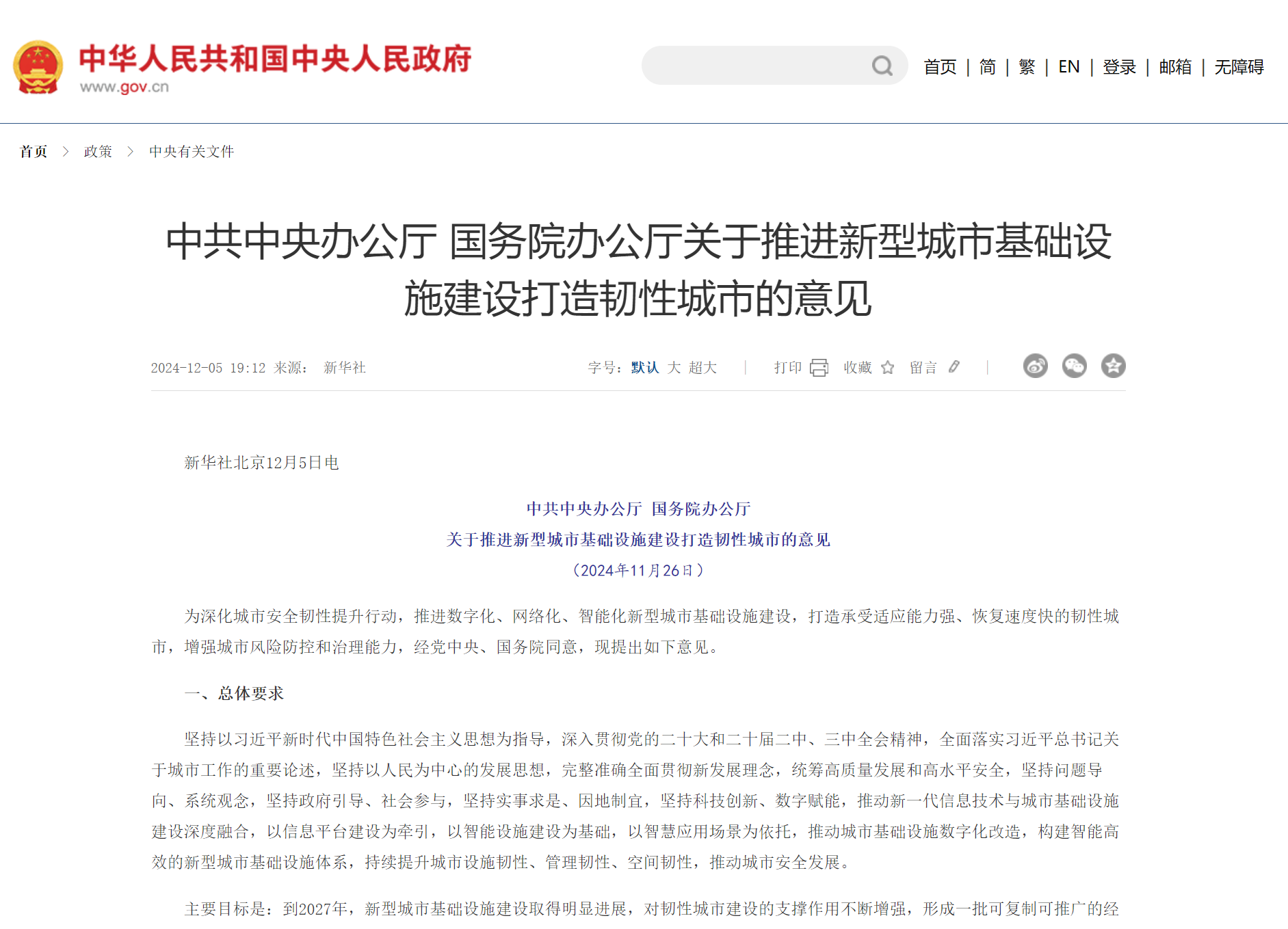 為深化城市安全韌性提升行動(dòng),推進(jìn)數(shù)字化、網(wǎng)絡(luò)化、智能化新型城市基礎(chǔ)設(shè)施建設(shè),打造承受適應(yīng)能力強(qiáng)、恢復(fù)速度快的韌性城市,增強(qiáng)城市風(fēng)險(xiǎn)防控和治理能力,經(jīng)黨中央、國(guó)務(wù)院同意,現(xiàn)提出如下意見。