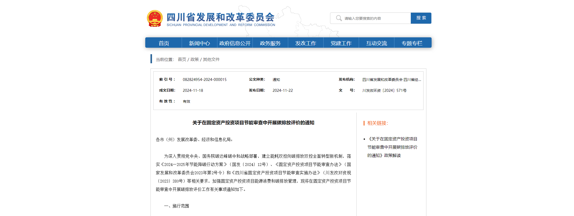 關(guān)于在固定資產(chǎn)投資項(xiàng)目節(jié)能審查中開展碳排放評(píng)價(jià)的通知 各市(州)發(fā)展改革委、經(jīng)濟(jì)和信息化局:為深入貫徹黨中央、國(guó)務(wù)院碳達(dá)峰碳中和戰(zhàn)略部署,建立能耗雙控向碳排放雙控全面轉(zhuǎn)型新機(jī)制,落實(shí)《2024—2025年節(jié)能降碳行動(dòng)方案》(國(guó)發(fā)〔2024〕12號(hào))、《固定資產(chǎn)投資項(xiàng)目節(jié)能審查辦法》(國(guó)家發(fā)展和改革委員會(huì)2023年第2號(hào)令)和《四川省固定資產(chǎn)投資項(xiàng)目節(jié)能審查實(shí)施辦法》(川發(fā)改環(huán)...